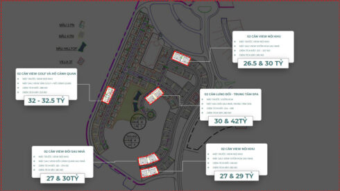 - Giá bán Biệt thự: 28 Tỷ – 42 Tỷ/Căn